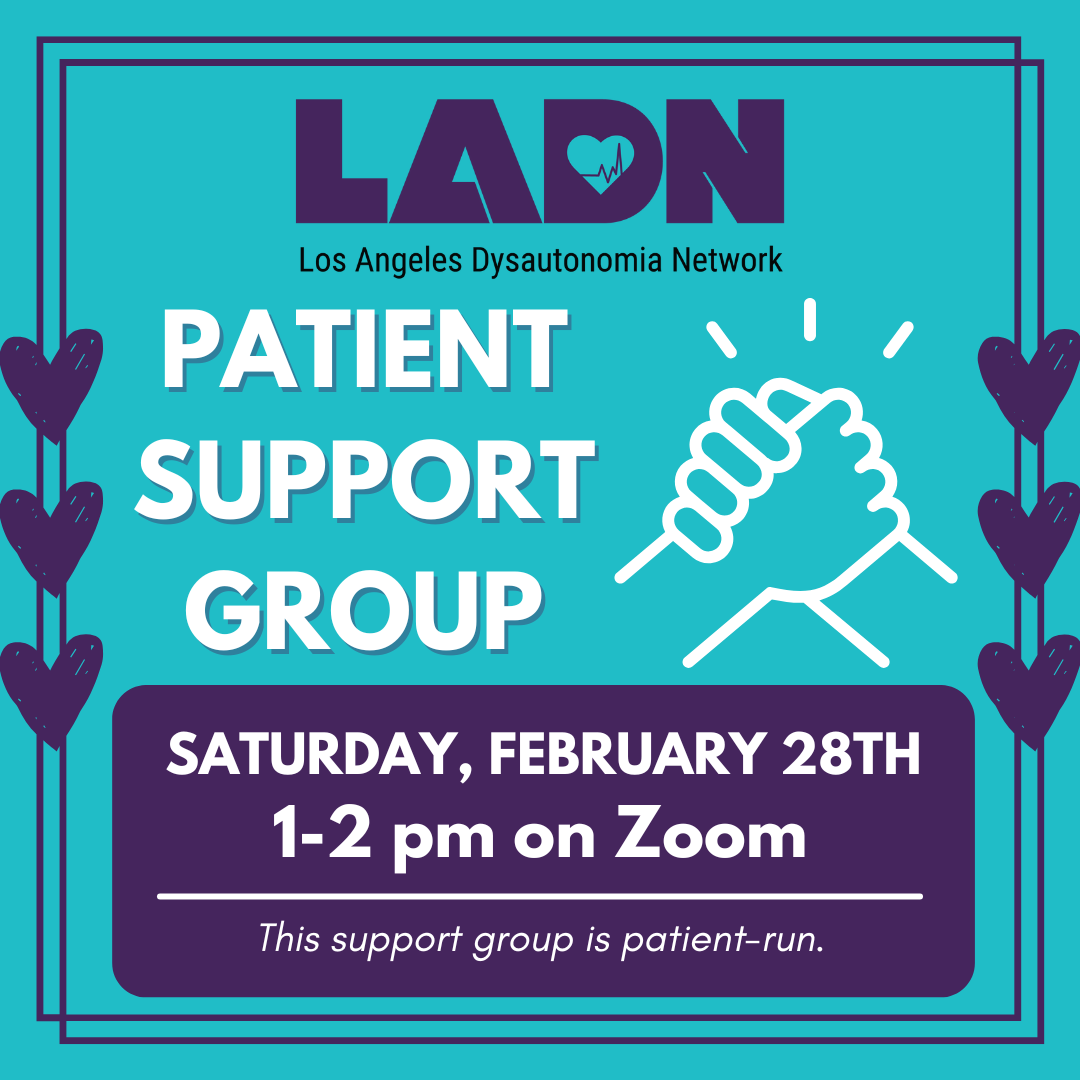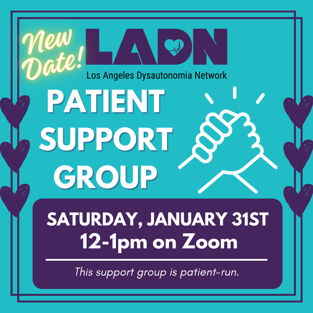Join us for our monthly support group for dysautonomia patients living in California. Our support group provides a space for patients to share their experiences related to dysautonomia, as well as an opportunity to provide and receive support from others living with this condition. This meeting will take place in a virtual format via Zoom.